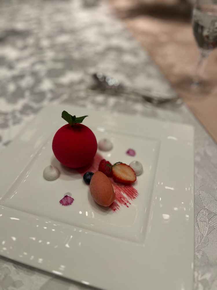 緑が多く、ビルが見えなかったのが、落ち着いた気持ちになりました。披露宴会場やパーティーのお部屋の作りの由来も聞けて楽しかった
