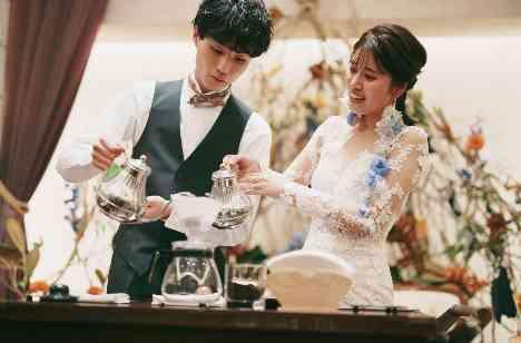 コーヒーがお好きなお二人でしたので、お二人でコーヒードリップを行って今いました。お二人でお湯を注ぐ姿は日本伝統のお祝い儀式である「水合わせの儀」を思わせるようでした。水合わせの儀は家族を一つにするという意味のある素敵なセレモニーです。その意味にちなんで、お二人はドリップしたコーヒーをそれぞれのご兄妹に飲んでいただき、家族の繋がりを感じたセレモニーとなりました!
