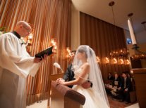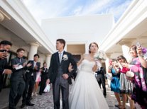 大好きなお父様と歩くバージンロードの先には大好きな彼が待っている。大切な人の手から大切な人の元へのお送り出し。背中を押してくれるお父さんの大きな手が温かく感じられ、安心感を与える。いよいよ始まるお二人の為の大切なセレモニー。聖壇に上りニーラで膝まづき祈りの時・・・。見つめる視線の先は、お二人の明るい未来が・・・。