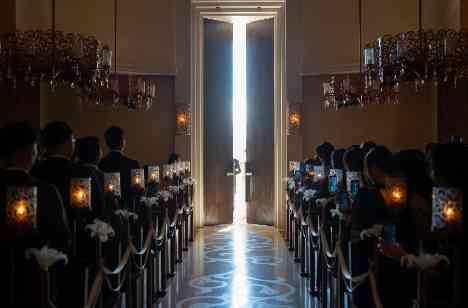 ゲスト目線で見たときに入る一筋の光は、ゲストが憧れるような入場のシーンとなります。 挙式の流れに合わせて照明が変わっていくのですが、新婦様入場前はチャペルの照明が暗くなりますので、より光が入る瞬間が際立ちます。 バージンロードは花嫁様の人生を表しており、大切なご家族様と一歩一歩進む姿は、ゲストも自然と涙がでる空間となります。