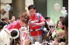 ファーストバイトのスプーンを広島のお土産で有名なしゃもじで行った。福運をまねくと言われているしゃもじでのファーストバイトでお2人は幸せを召し取った。またお色直しの中座と見せかけてお2人がカープのユニフォームに早着替えをして、ゲストにサプライズ。野球場の売り子さんの様にビールサーバーとおつまみでゲストのテーブルをラウンド。ゲストに感謝の気持ちを伝えた。