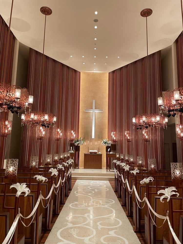 挙式会場の設備は、ランタンが綺麗で、百合の香りにも包まれですごい良かった。 待合室からの動線は見学できなかったのでわからない。披露宴会場は、低い位置に窓がないので、閉じ籠る印象。
