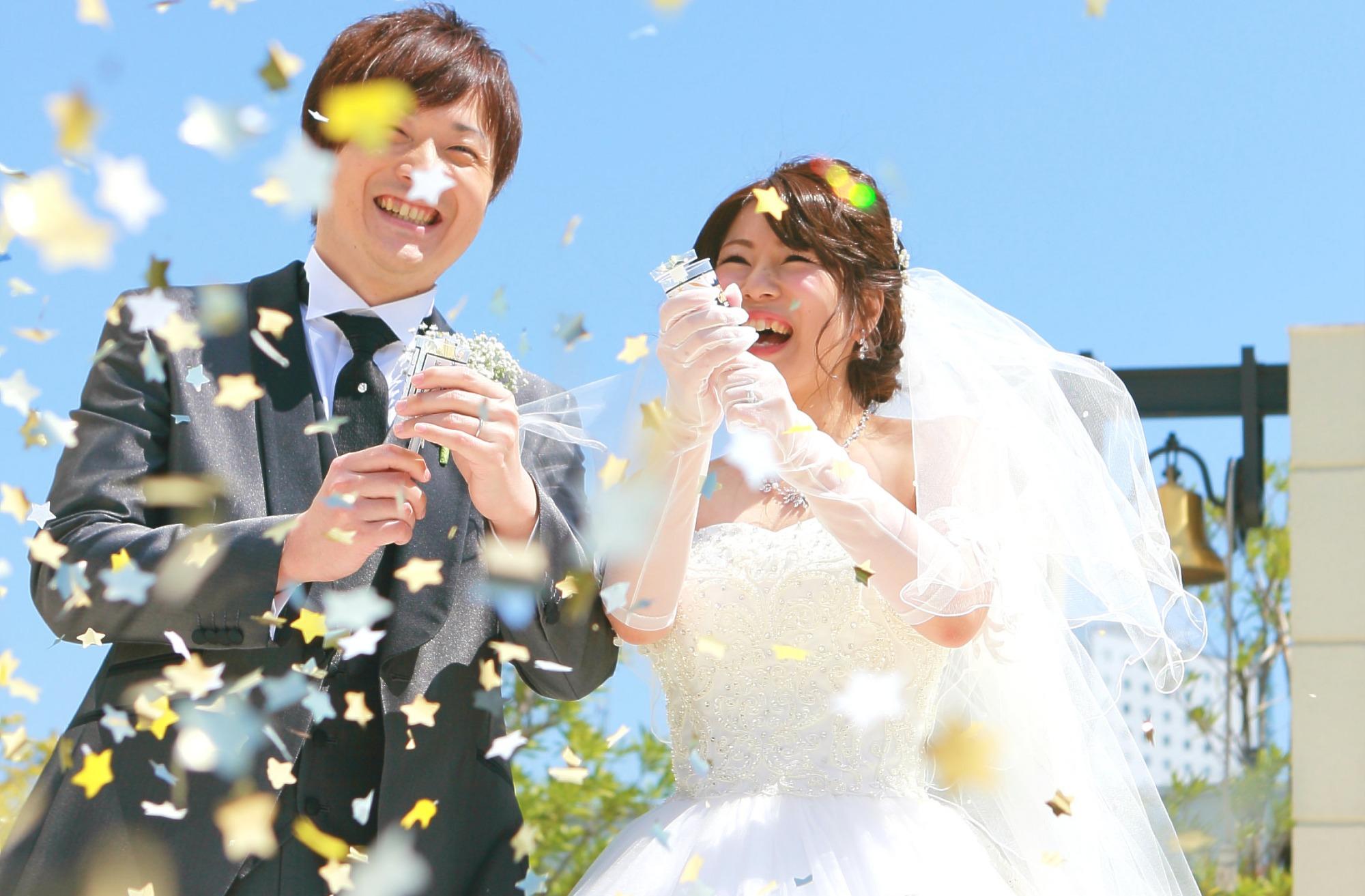 フラワーシャワーと一緒にお2人が手作りをされたお星さまを2人が青空に向けて... とても可愛いアフターセレモニーになりました。