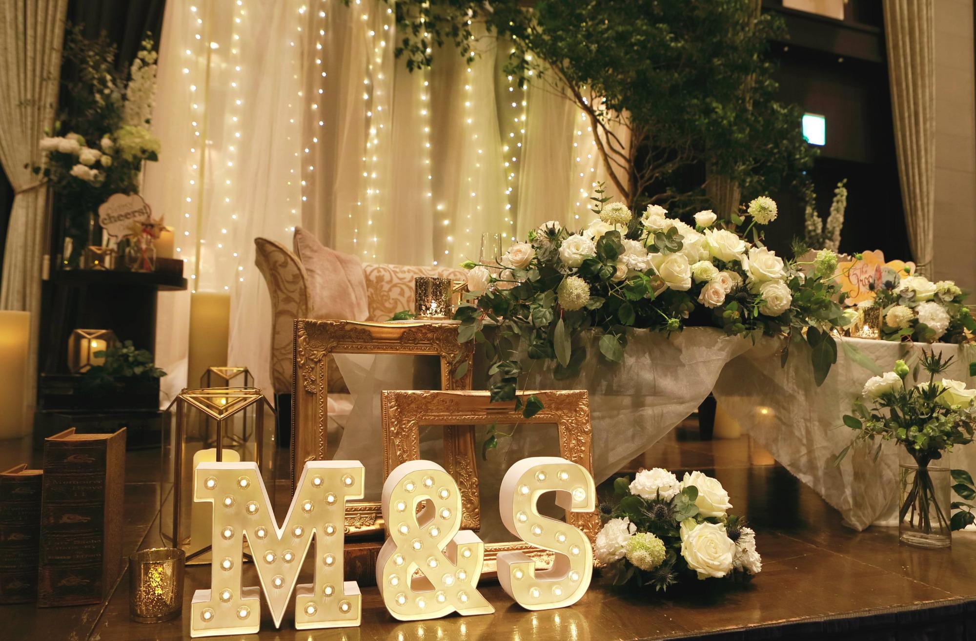 何度もお打合せをして、イメージ通りの可愛らしいメインステージが出来上がり♪ ゲストの皆様と素敵なお写真を撮影することができました。