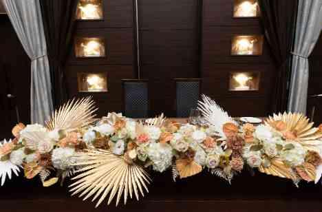 ゲストが緊張しないよう落ち着いた雰囲気を求めていらっしゃったお二人。非日常感が前面に出ないよう心配りをされたゲスト思いなお2人でした。 THE結婚式という雰囲気ではなくオレンジなどの温かみのあるお色をベースに優しい雰囲気の会場にしたいと専属のフローリストとお打合せを重ねていらっしゃいました。当日は笑顔溢れる温かい雰囲気の会場でした。