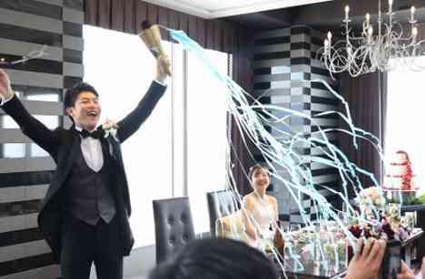 新婦様は、ご懐妊中のため体調面も含め心配、不安ごとがたくさんあるご様子でした。そこで安心して披露宴を進めていけるように「余興」と「フリータイム」をご提案させていただきました。また、新婦様から性別発表「ジェンダーリビール」を新郎様とゲストの方へ行いたい!とご相談を頂きました。性別発表を行い、新郎様が大喜びする姿に会場全体が笑顔に溢れました。