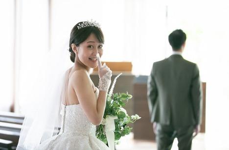 新郎様にはずっと内緒にしていたウェディングドレス姿 お気に入りの1着でファーストミートを行いました。 当日は、時間が限られており、お仕度やリハーサルでバタバタ!前撮りでのファーストミートをご提案いたしました。前撮りでは、ゆっくりと二人の時間を過ごせるため、沢山の写真を残すことができます。また、当日は、使用しない高層階での写真も撮影できるのは前撮りならではの魅力point!