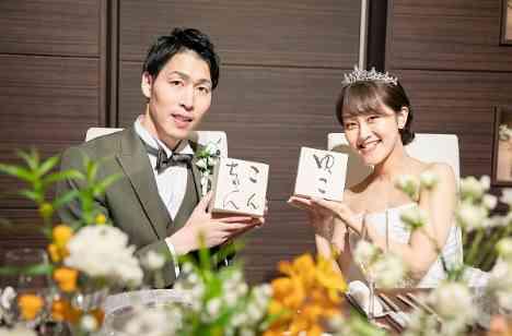 ゲスト参加型の演出で会場を盛り上げたい方にお勧め!幼少期クイズを提案いたしました。より、難易度をあげるため赤ちゃんの頃の新郎新婦様の組み合わせで行いました。少しでも待ち時間が退屈にならないように用意したお二人らしいおもてなし演出になりました。正解者の方から抽選で2名の方にプレゼントを贈呈し盛り上がる一コマになりました!