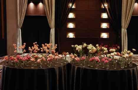 披露宴会場はゲストの方に作ってもらう!フラワービュッフェを開催。ゲストの方のテーブルにはお花が何も置かれていません。お越し頂いたゲストの方がお花をチョイスし、飾りつけ!珍しい演出にゲストの方もとっても楽しみながら、飾りつけをされていました。他にもドキドキクラッカーをやったりスイーツビュッフェをやったり、イベント満載の披露宴でした。