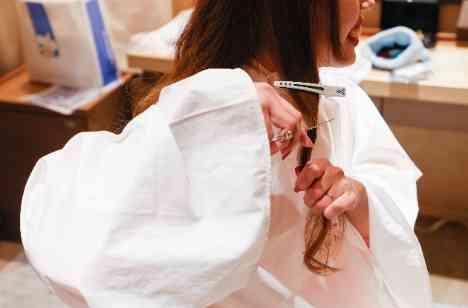 新婦様がずっと内緒にしてきたこと、それはサプライズカット。お色直しの際にこれまで長かった髪をボブまでバッサリ。ご自分ではさみを入れた後は、ご友人の美容師様がカット。まだ学生だった頃に結婚式のヘアセットは私がやるね。と約束されていたおふたり。見事にサプライズは成功し、新郎様だけではなく、ご参列頂いているゲストの方もびっくり。とても思い出に残る演出でした。