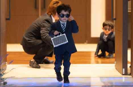 挙式の最中に可愛すぎるリングボーイの登場!アタッシュケースを持ち、サングラスをかけての登場にゲストの方は「かわいい~」の嵐!皆さまがメロメロになっている隙に、新郎新婦様へ指輪をバトンタッチ!さながらスパイのような行動に新郎新婦様はにやにや。挙式が終わってのセレモニーでは、ブーケプルズもあり、とっても大盛り上がりの挙式となりました。