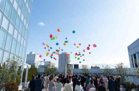挙式の終わりにはガーデンでバルーンリリースを行いました。 空に飛ばす風船には新郎新婦様の幸せが天まで届きますように。という意味が込められています。空に舞いあがる風船にゲストの方は大盛り上がりでした。 披露宴では、新郎さまがお酒がお好きということでビールサーバーをお持ちになってゲストの方に振舞っていました。