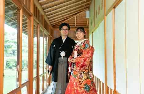 当初はグランディエールの館内でのウエディングドレスのお写真と、ロケーションフォト『駿府城』で紋付袴、色打掛のお写真もどちらも撮りたいです。とおっしゃっていたおふたり。 お打合せを始めるとご家族と一緒にお食事を楽しみたいとの事で、お写真を撮った後にお食事会を実施することに決定。 大人で落ち着いているおふたりにぴったりの結婚式となりました。