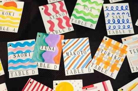 「こだわりが詰まった結婚式にしたいんです!」とおっしゃっていたおふたりは、カラフルをテーマに結婚式を行いました。 エスコートカードは鮮やかな色合いで統一され、ゲストを温かく迎え入れる演出となりました。 新婦様のヘアスタイルも、カラフルな花飾りをつけた華やかな仕上がりで、特別感を演出。 ゲストテーブルは、カラフルな花を使いました。