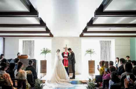 挙式は、落ち着いた雰囲気の中で行う厳粛なキリスト教式。 静寂の中に響く音楽と共に、おふたりがバージンロードを進む姿はとても印象的でした。 永遠の愛を誓う瞬間には、ゲストの皆様も自然と引き込まれ、感動されているご様子が伝わってきました。 心が洗われるような、あたたかく記憶に残る挙式となりました。