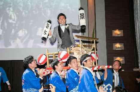 こだわりの演出は、余興での『お・み・こ・し』です。 法被をまとったご友人様たちが、新郎様を御神輿を担いで「わっしょい!わしょい!」と会場内を練り歩きました。 快適に過ごせるシンフォニーだからこそ、この演出ができた点も、とても良かったです。