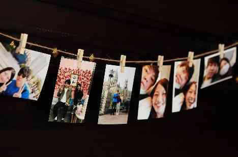 お2人が出逢ってから、今までの想い出がたくさん詰まったお写真をウッドピンチを使って、ウェルカムスペースに飾りました。 ゲストの皆様も1枚1枚の写真を見ながら、お2人が出逢ってからのストーリーを知っていただけました。