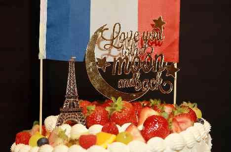 ウェディングケーキは一番上にフランスをイメージするケーキトッパーをおきました!イチゴもたっぷり使用し、お洒落なウェディングケーキでした!お互いにケーキを食べさせあう、ファーストバイトではかわいらしいセレモニーに、皆様お写真をたくさんお撮りいただきました!