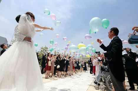 挙式後には、ゲストの皆様とセレモニー。ガーデンにてカリヨンの鐘を鳴らした後はバルーンリリースを行いました。色とりどりのバルーンが空に舞う景色はとてもきれいでした。ゲストの皆様が楽しんでいただける演出となりました♪