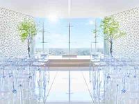 大聖堂よりアットホームに挙式を挙げたい。 そんなお2人に人気のチャペル「リアンシエル」。 葵タワー最上階の【地上110m】の高さから駿河湾と雄大な空をバックに執り行う挙式は感動的。