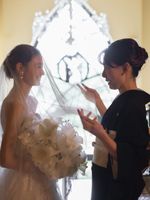 赤坂ル・アンジェ教会では『新郎控え室』『新婦控え室』をそれぞれご用意。バージンロードの意味を重んじ、晴れ姿での対面を「挙式本番」にすることも。また、挙式前には『家族との時間』もご提案。式当日に伝えられる感謝の気持ちは心に刻まれる、ずっと残る大切な言葉。親御様の目を見てこれまでの気持ちを伝えてみて。