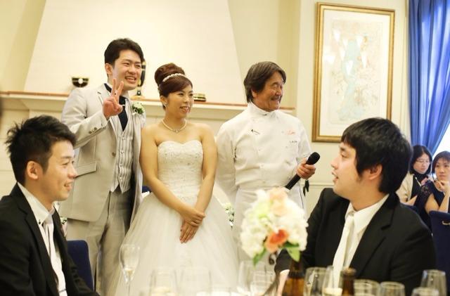 レストランならではの演出でシェフからのご挨拶を取り入れました!! 坂井シェフもサプライズで皆様の前に登場!! ゲストも笑顔になりました♪
