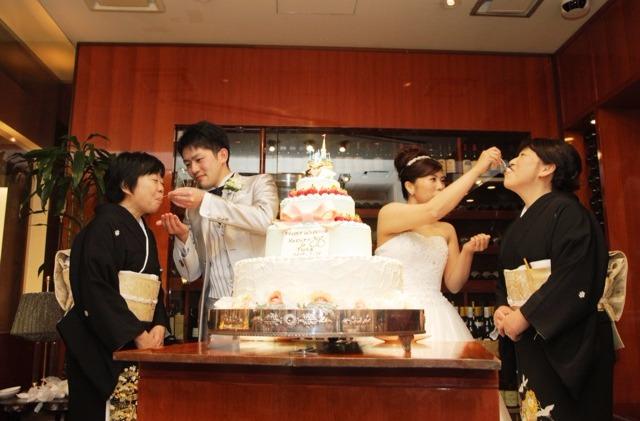 打合せのなかで一番こだわったのはテーマを元にしたオリジナルケーキです! お二人のテーマ「シンデレラ」にふさわしく、専属パティシエと一緒にこだわりのオリジナルケーキを作りました♪ ゲストのみなさまも大盛り上がり♪