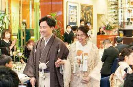 ご披露宴の入場はおふたりこだわりの袴姿・白無垢姿でご入場。ノリノリの音楽にあわせて現れたおふたりにみな様も思わず大歓声でした。冒頭のスピーチに緊張されていたおふたりも乾杯後にはみな様と距離の近い、歓談のお時間を楽しんでいらっしゃいました。お写真タイムやお話…普段はなかなか会うことのできない方とも素敵なお時間をお過ごしいただけたかと思います♪
