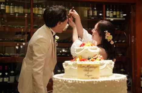 赤坂ル・アンジェ教会のケーキ入刀・ファーストバイトはあえて親御様と近い場所である、会場の入場口付近で行います。ご家族様を巻き込みながら行うケーキ入刀は、とても盛り上がるイベントの一つです。 専属のパティシエがつくる一生に一度の華やかなウエディングケーキ。おふたりのご希望に合わせてご案内させていただいております。