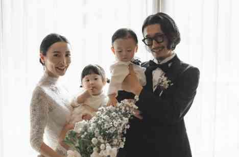 誓いの言葉はおふたりだけで読み上げる予定でしたが、急遽お子様も加わり家族4人での誓いの言葉のご披露に。家族4人での素敵な姿にゲストの皆様も温かく大きな拍手を送りました。おふたりがお子様達のためにご準備されたのは、未来に向けたCDとメッセージ。音楽が大好きな新郎様がお子様が20歳になった時に聞いて欲しいCDを贈りました。