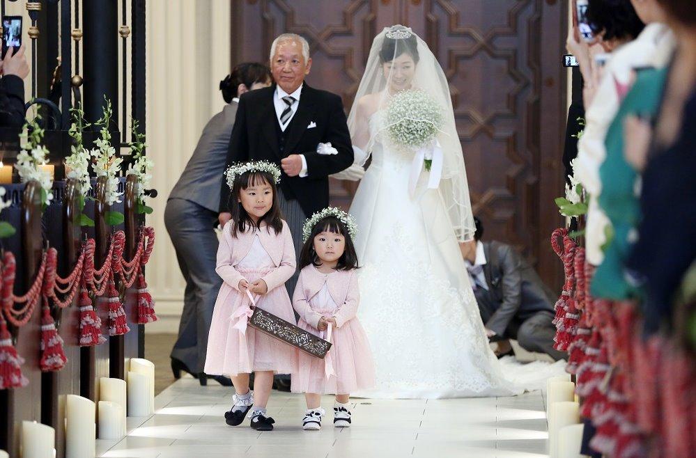 新婦様のご親族の可愛いご姉妹に、リングガールを務めていただきました。ご入場の際には、ゲストの皆様から思わず歓声があがり、大聖堂は和やかな雰囲気に包まれました。