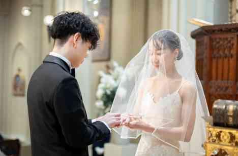 結婚式当日、いよいよ挙式入場というとき、大聖堂にゲストがたくさん入っていたので、ふたりともとても緊張していました。また、緊張してしまっていたからか、指輪交換時に左手ではなく右手を出してしまい、そのまま右手に指輪をはめていたことが、今でもずっとふたりの中で印象に残っています。たくさん緊張したけれど、大切な人たちに見守られながらの挙式は、最高の思い出となりました。