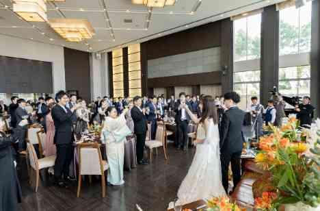 披露宴で乾杯のスピーチを新婦の甥っ子に頼みました。甥っ子の緊張する姿とちょこっと棒読み+方言のあるスピーチが子どもならではの可愛さであふれていて、会場全体が和やかな笑顔で包まれました。また、入場の際は壁一面オーシャンビューの大きな窓から、カーテンオープンで登場という演出を行いました。ゲストから拍手だけでなく大きな歓声もいただき、私たちにとっても素敵な思い出となりました。