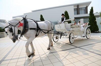 挙式後のご移動は白馬の馬車で