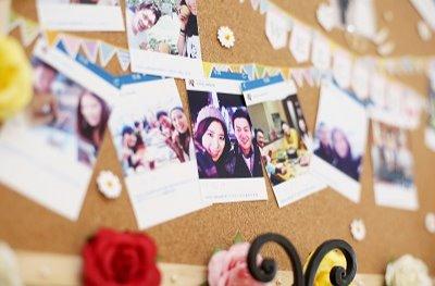 各卓を回って、ゲストの皆様全員と記念撮影♪ フォトプロップスを使って思いっきり可愛い演出に♡
