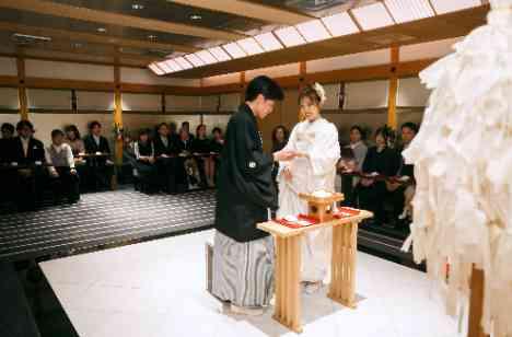 挙式はホテル内の神前式【幸福殿】を選ばれ、家族・親族のみで厳かに執り行われました。 雅やかな調べとともに神殿に一歩ずつ進む姿に、ご家族の想いが重なり合い、会場はあたたかな空気に包まれます。 親しい方々に見守られながら交わした誓いは、伝統の格式とぬくもりが調和し、心に深く刻まれる忘れられないひとときとなりました。