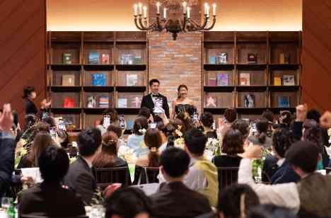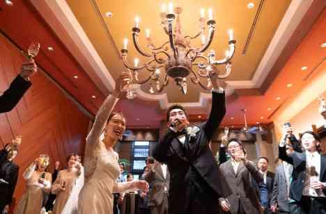 ゲストとの距離感も近く会場はとっても広々しているものの、かしこまることなくアットホームに過ごせる空間。ケーキセレモニーでは両家の母にサンクスバイトも。新郎母によるオリジナルラップソングでは会場が一つになって全員立ち上がって一緒に大盛り上がり。「ゲスト一緒に楽しめるように」と、音楽活動をしている新郎にちなんでイントロゲームを実施。「久しぶりに会う友人も多い中、歓談時間もたっぷり取れて大満足でした」。
