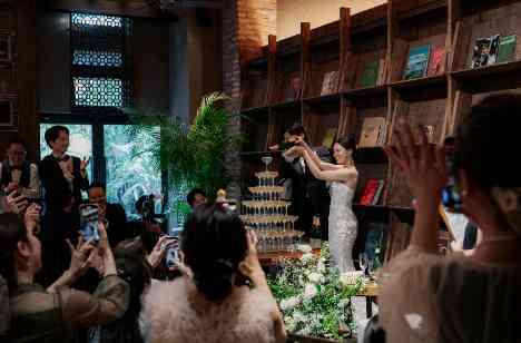 お酒が好きな私たちだからこそ、ケーキ入刀ではなくシャンパンタワーの演出にしたことは私たちらしいこだわりです。 おしゃれさもありながら、ファーストバイトのかわりに、乾杯をするというシーンにしました。サプライズで大切な友人も呼び、一緒に乾杯をして楽しいひと時になったと思います。自分たちにフォーカスされる演出はいらないと思っていましたが、当日みんなの顔を近くで見れて、とても幸せな気持ちになりました。