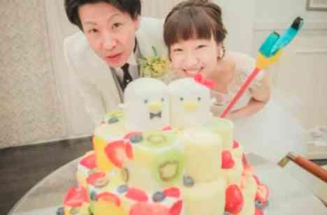 アールベルアンジェ名古屋が誇る新聞にも掲載経験のある凄腕のパティシエとしっかりとお打ち合わせを行いおふたりらしさ満載の≪世界に一つだけのオリジナルウェディングケーキ≫!おふたりの好きなキャラクターを取り入れて★ちなみに新婦様から新郎様へのファーストバイトはカラフルアイアンハンド!新郎様も頑張ってバイトしていました★