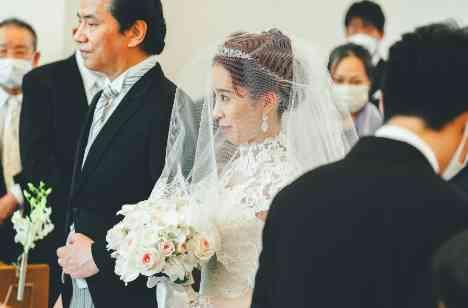おふたりが選んだのはキリスト教式。神に誓いをたて、厳かな雰囲気の中挙式は進んでいきます。挙式スタート時にはお母様からのベールダウン。「いってらっしゃい」「いってきます」そんな言葉の中には改めて新婦様の覚悟が伝わってきました。お父さんと歩くバージンロードはやはり特別で、ふたりでしっかり想い出を振り返りながら歩いてくださいました。