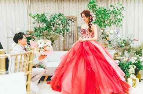 エンディングへ向かう直前、突如入ったアナウンス。「実はこの会場の中である方へ想いを伝えたい方がいらっしゃるそうです。どうぞご起立ください」立ち上がったのは新郎様。会場の皆様が見守る中であってから今日までの、そしてこれからのふたりの未来への想いが綴られていました。お手紙とともに渡した花束は新婦様が大好きでカラードレス・想い出の衣装を同じ色のピンクの花束でした。