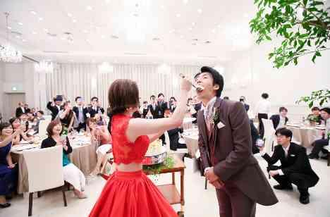 新婦様のご希望でお色直しと同時になんと《ヘアカット》を!ヘアカット役は、アールベルアンジェ名古屋でも一番人気スタイリストが行わせていただきました!!さらには、ドレスも赤に変えてイメージチェンジをしました!!もちろんゲストからは驚きと歓声が!