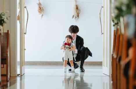 おふたりの入場後、 人前式にも関わらす、牧師様が登場?! 当館の大人気プランナーS牧師ではありませんか! Sのことが大好きすぎる新郎新婦様。 無事Sera牧師との誓いの言葉が結ぶと、 チャペルのドアが開き、現れたのは 指輪を握りしめたおふたりの愛息子Mくん! 一生懸命パパママの元へ指輪を運ぶ姿に、 ゲストの皆様も”かわいい~♡”とカメラを向け 一番の盛り上がりをみせました★