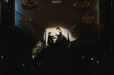 披露宴も後半に差し掛かり、 新婦様はおしゃれなブラックドレスに衣裳チェンジして再入場! 当館の目玉であるY字階段から入場し、 なんと踊り場で新郎様から花束のプレゼント! 予想外のサプライズに 新婦様は驚きと嬉しさで笑みがこぼれます♡ 披露宴後半は 皆様とのご歓談や愛息子Mくんクイズを楽しみました★