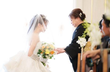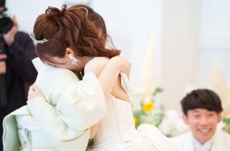 親御様に最後の身支度を整えていただき、 熱くハグを交わした新郎様 これまでの感謝の気持ちをこめてながく抱擁を交わします 成長した後ろ姿に思わず涙する親御様でした♡ 続いて新婦様 お父様にエスコートされながらチャペルの扉をくぐり、 お母様に最後のお支度ベールダウンをしてただきます 「とてもきれいよ」とお声がけをされる姿にゲストの皆様も感動のムードに引き込まれます