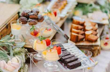 おふたりの中座中は、おふたり手作りの生い立ちムービーを上映しました! ゲストの皆様もなつかし~と楽しむ中、おふたりはお着替えを済ませてY字階段前でスタンバイ! 登場したおふたりに歓声が飛び交う中、 おふたりは何やらこっそりガーデン側のカーテン前に移動し始めます なんとおふたりからゲストの皆様へサプライズで用意した デザートビュッフェ! おふたりのオープンコールでお披露目されました★