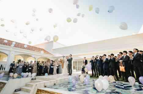 ガーデンにて フラワ&バブルーシャワーを行いました! なんとそれで終わるかと思いきや、ガーデンのプールにはたくさんの風船が!ドロップ&フライで写真映えする演出を行いました! 晴天にも恵まれ、ガーデンでコスメ&カップラーメンブーケのトス大会も開催!貸切だからこそ、ガーデンをめいっぱい使ってゲストの皆様に楽しんでいただける演出を詰め込みました★
