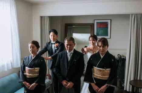 まずはブライズでファーストミート♪ お互いに初めて衣裳を身にまといご対面! ニコニコでお互い見つめあい、しばしロマンティックなムードに♡ おしゃれな記念写真を撮り、お次はファミリーミートに移ります★ 両家親御様にお集まりいただき、おふたりから肩をトントン 振り向くと、素敵な笑顔のおふたりに 両家親御様はおふたりの成長と頼もしさを感じてか 笑顔を見せつつもお目元にはキラキラと光るものが