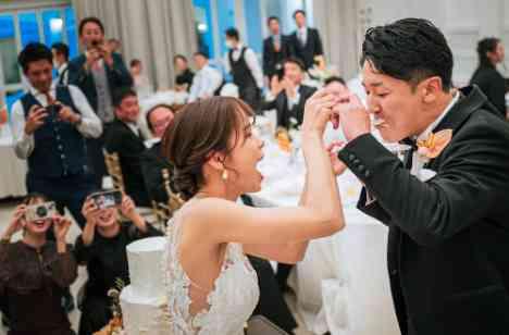 ケーキ入刀では、シンプルながらもおふたりの会場コーディネートに合わせた 秋っぽいアースカラーを施したおしゃれなウェディングケーキが登場♡ ファーストバイトでは大きなスプーンで新郎様に「おいしい料理をたくさん作るね」と これからもよろしくねのお気持ちを込めて食べさせあいっこ♡ サンクスバイトにはご友人ご家族へむけてお子様にもミニスプーンでおすそ分けを行いました♡