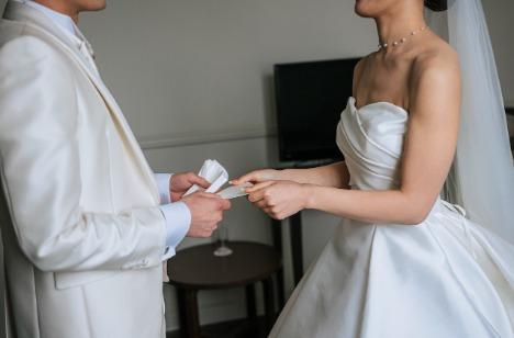 ブライズルームでのファーストミートでは、実はお互いにサプライズプレゼントをご用意! 新郎様からは新婦様をイメージしたオリジナルブーケ、 新婦様からは感謝の気持ちを込めたお手紙をご用意♪ 新郎様はいつも気持ちを伝える時は新婦様にお手紙を書いてくださるそうで、 今回は新婦様も新郎様に同じように言葉を綴ってみたそうです♡ あまりの嬉しさに、新郎様は結婚式が始まる前から号泣しちゃいました・・・